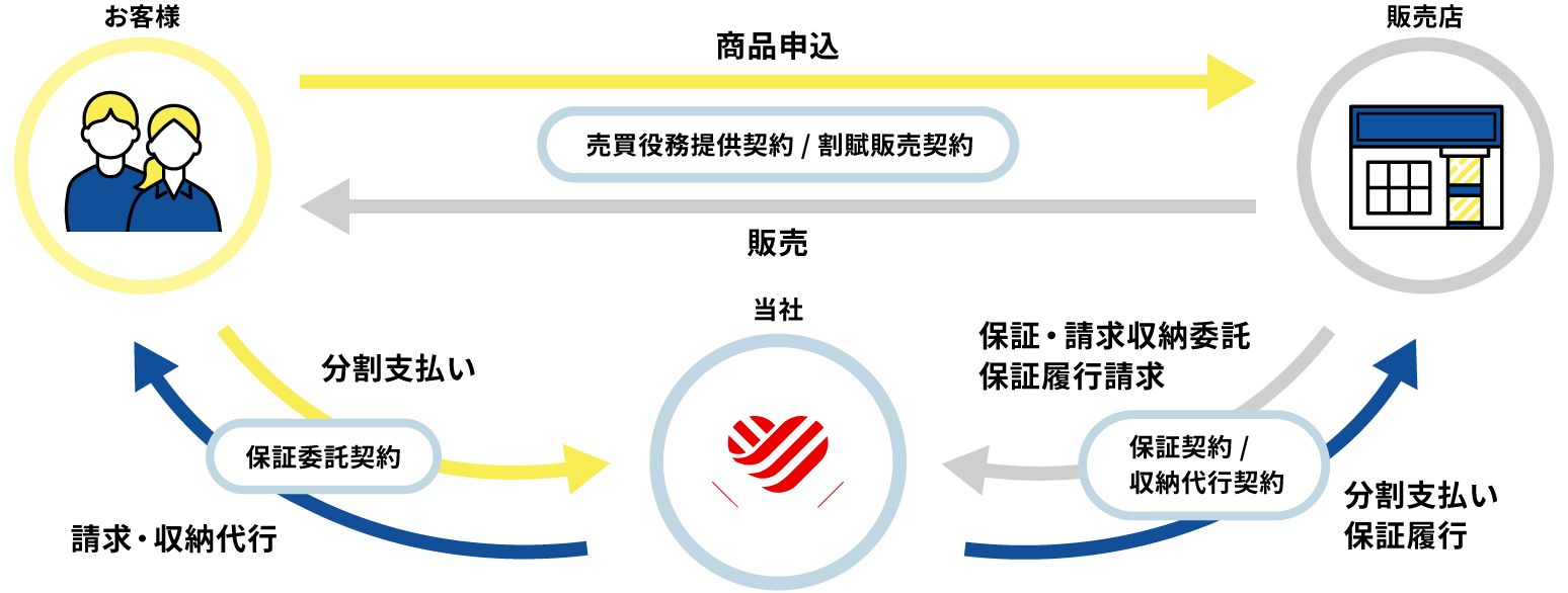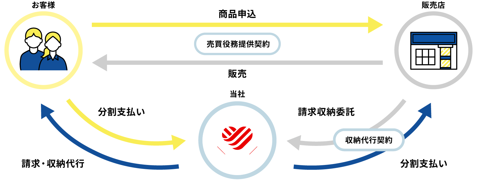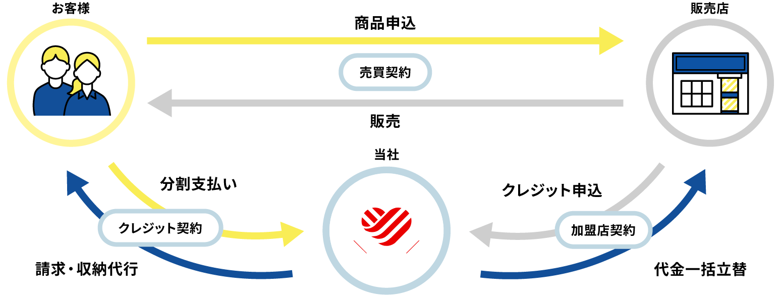 自社割賦/加盟店様が提携ローンなどを介さず、購入者様と直接「割賦契約」を行う形です。